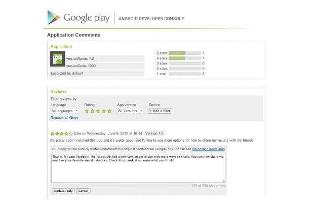 Теперь все разработчики под Android смогут отвечать на комментарииС недавнего времени разработчики программного обеспечения для платформы Android могут оставлять сообщения на комментарии пользователей на Google Play. Как помним, подобная возможность существовала и ранее. Но изначально она была ориентирована не на всех разработчиков, а только на ТОПовых. Теперь же в компании Google, очевидно, что разрешили подобное средство «обратной связи» всем, без исключения разработчикам.