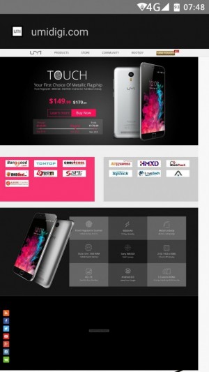 По данным производителя: 30 минут серфинга в Сети "съедает" всего 4% заряда аккумулятора UMI TOUCH
