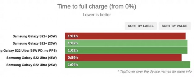 Тесты Samsung Galaxy S22+ и S22 Ultra показали бессмысленность быстрой зарядки в смартфонах