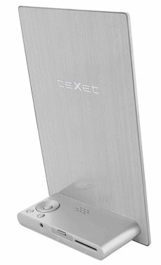 teXet представила 3-миллиметровую фоторамкуteXet TF-803 по состоянию на сегодня представляет собой едва ли не самую тонкую фоторамку в мире. Толщина корпуса только 3мм. Гаджет получил корпус, реализованный из шлифованного металла. Все необходимые элементы питания размещены на подставке. Здесь же находится и слот для карт памяти microSD.