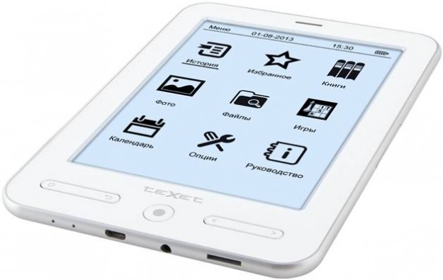 teXet TB-526FL - тонкий ридер с подсветкой и 6-дюймовым дисплеемteXet представляет новинку TB-526FL – тонкий стильный ридер с дисплеем электронные чернила и модулем светодиодной подсветки. Электронная книга teXet TB-526FL оснащена высококачественным 6-дюймовым дисплеем с разрешением 800х600 пикселей, изготовленным по технологии электронная бумага и отображающим до 16 оттенков серого цвета, благодаря чему изображение выглядит столь же качественно, как и на листе бумаги. Отличительной особенностью книги TB-526FL является модуль светодиодной подсветки экрана. Теперь удовольствие от чтения можно получать не только при ярком солнце, но и в затемненном помещении. Клавиши регулировки уровня яркости 12-ступенчатой подсветки вынесены на правый торец устройства.