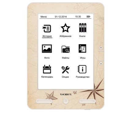 По словам производителя, teXet TB-550 на одном заряде способен пролистать до 10 тысяч страниц. Он поддерживает большинство популярных текстовых форматов – DOC, DJVU, PDF, EPUB, FB2, TXT, MOBI, HTML, PDB, RTF и CHM. В книге реализована функция просмотра изображений в форматах JPG, BMP, GIF и PNG, в том числе и в режиме слайд-шоу.