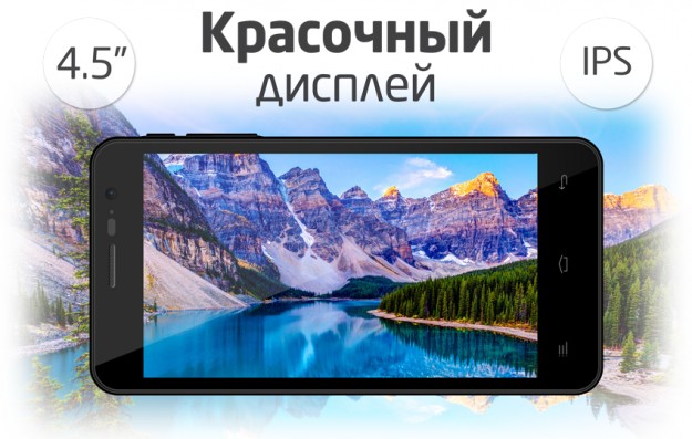 Новинка получила от производителя 4.5-дюймовым IPS-дисплей с разрешением 854x480 пикселей, 2-ядерный процессор MediaTek MT6572М с тактовой частотой 1 ГГц, 512 МБ оперативной памяти и 4 ГБ встроенной, которую можно расширить с помощью карт памяти формата microSD максимальным объемом до 32 ГБ, есть поддержка двух SIM-карт. На борту девайса имеются FM-радио, беспроводные модули Wi-Fi 802.11 b/g/n, Bluetooth 3.0 и GPS, VGA-фронтальная камера и 5Мп основная. Аккумулятор емкостью 1700 мАч, по словам производителя, хватит на 5 часов работы устройства в режиме разговора или на 325 часов в режиме ожидания.