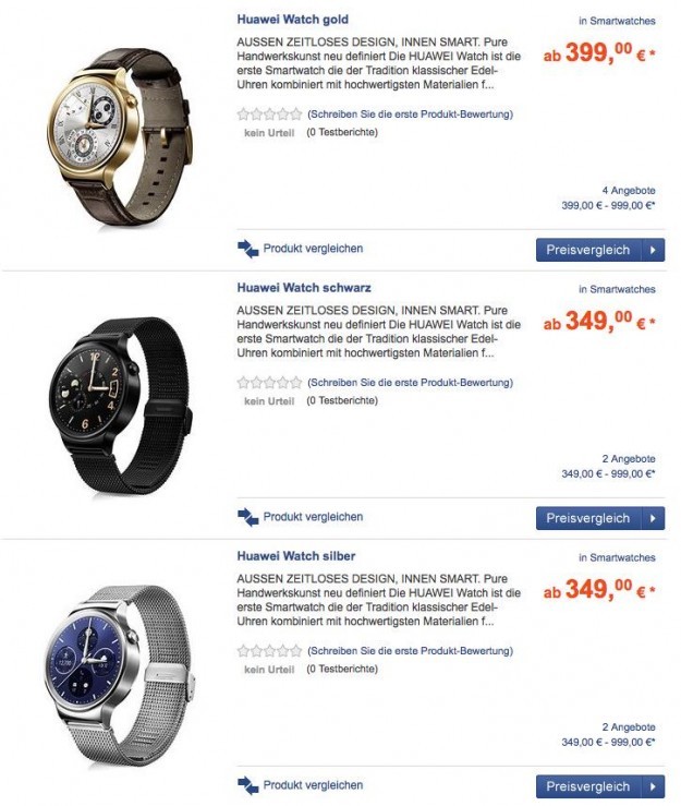 Официальная презентация Huawei P8 состоится 15 апреля. Предполагаемая стоимость новинки в Поднебесной составит $480. А вот какого объема аккумулятор получит устройство, читайте в этом материале. Стала известна стоимость смарт-часов Huawei Watch В рамках выставки электроники MWC 2015 компания Huawei представила первые смарт-часы в своей линейке носимых устройств — Huawei Watch, а уже сегодня некоторые немецкие онлайн-ритейлеры открыли прием предзаказов на гаджет. И вместо умопомрачительных $1000, о который сообщалось в Сети ранее, за новинку Huawei просят 349 евро (черная и серебристая версии) и 399 евро (золотая). Более детальная информация в этой новости.