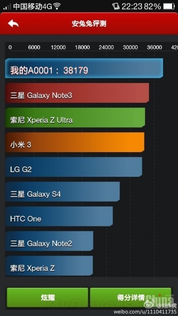 Неанонсированный флагман OnePlus One установил новый рекорд AnTuTu Протестированный на этой неделе смартфон OnePlus One в AnTuTu выдал весьма недурственный результат - 38179 баллов, чего оказалось достаточно для того, чтобы «обойти» прошлогодний флагман Note 3.