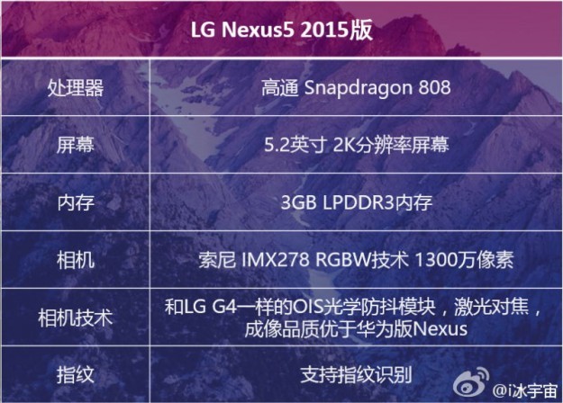 LG Nexus (2015) получит 2K-экран, Snapdragon 808 SoC и 13Мп камеру Sony Китайские источники поделились спецификациями готовящегося к анонсу "гуглофона" LG Nexus (2015). Подробности в этой новости.