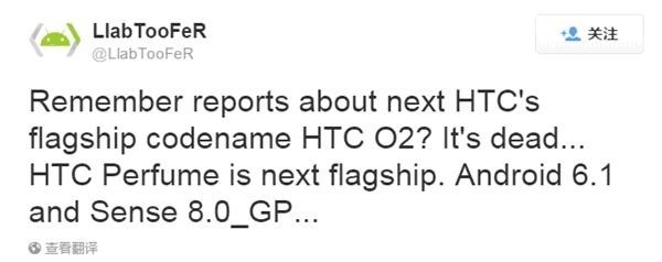 HTC готовит к анонсу смартфон "Perfume" с ОС Android 6.1 и Sense 8.0 По данным twitter-аккаунта @LlabTooFeR, новый флагманский смартфон компании HTC носит кодовое название "Perfume" и работает под управлением операционной системы Android 6.1 Marshmallow, поверх которой установлена фирменная оболочка Sense 8.0. Еще данные о новинке читайте в этой новости.