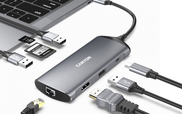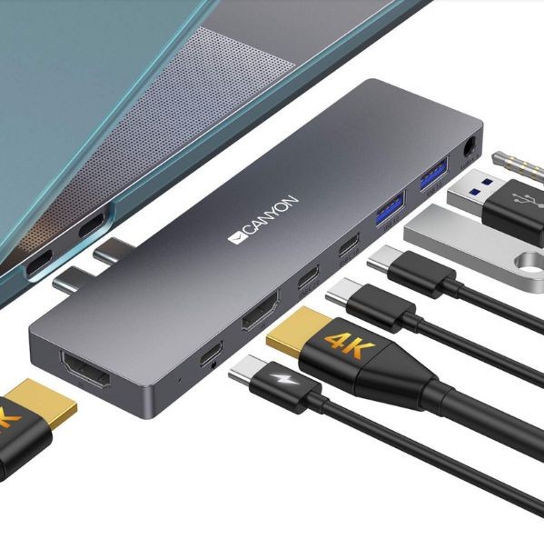 ТОП 3 хаби для комфортної роботиСучасні технології невдало пожартували над своїми користувачами. Обравши компактний, мінімалістичний та функціональний ноутбук або MacBook, власник розуміє, що всіх переваг його пристрою недостатньо для комфортної роботи. Іноді виникає потреба підключити додатковий монітор, вивести зображення на декілька екранів, зчитати дані з флеш-картки, підключити навушники, колонку чи принтер, залишаючись при цьому достатньо мобільним. Як розширити можливості ПК або ноутбука, який має всього 1-2 порти для підключення додаткових девайсів? Мультифункціональні хаби Canyon дозволять оптимізувати робоче місце та легко вирішувати безліч щоденних задач. Хаби Canyon - одне рішення для різних потребХаби Canyon - це стильні, сучасні пристрої, які давно вийшли за рамки функціонала простого перехідника. Приєднуючись до ноутбука, MacBook чи комп'ютера за допомогою Type-C кабелю, вони дозволяють використовувати функціонал девайсів по максимуму: