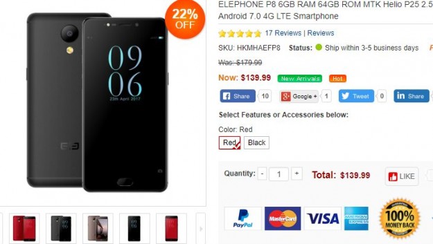 Товар дня: Elephone P8 за $139.99 за 6/64 Гб и Helio P25Осень дарит нам не только падающие листья на улице, но и падающие цены на мобильную технику, которая ежемесячно обновляется в ассортименте крупных интернет магазинов из Китая, включая Coolicool.com. Во-первых, эта торговая площадка предлагает купить смартфон Elephone P8. Цена на этот телефон на этот период установлена на уровне $139.99 ($179.99). Ограничений по количеству трубок нет. Отдельный плюс - бесплатная доставка по всему миру со склада в Китае.