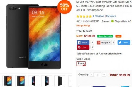 Товар дня: MAZE Alpha – безрамочный красавец за $104.99Безрамочные трубки есть уже практически у всех производителей и сравнительно новый бренд MAZE не исключение. Его смартфон не имеет рамок с трех сторон - MAZE Alpha, сейчас доступен по цене в $109.99, а с купоном «MZAP5» цена снизится еще больше - до $104.99, но только в магазине Coolicool.com. Важно отметить, что доставка идет напрямую из Китая и будет полностью бесплатной. Больше информации о трубке далее.