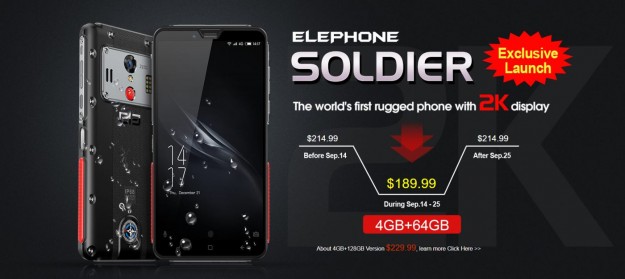 Товар дня: смартфон ELEPHONE Soldier с 2К дисплеем и IP68 за $214.99ELEPHONE Soldier появился на предпродаже со скидкой в магазине Coolicool.com и будет доступен всего за $214.99 $269.99 по этой цене до 14 сентября. Специальный ценник в $189.99 будет выставлен магазином с 14 до 25 сентября. Не упустите свой шанс. Купить ELEPHONE Soldier: сейчас - $214.99, с 14 сентября - $189.99