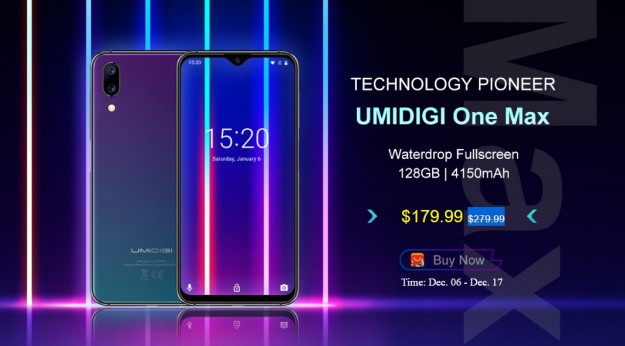 Смартфон UMIDIGI One Max - это улучшенная версия смартфона UMIDIGI One Pro, который был запущен в продажу летом этого года. Обновление получилось очень удачным и смартфон уже доступен на предпродаже в интернет магазине Coolicool.com за $179.99, но только с 6 до 17 декабря. Подробнее о смартфоне читайте в этой новости.
