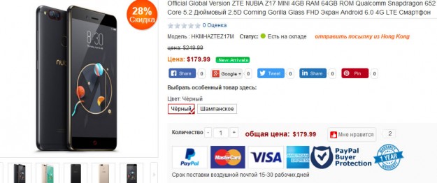 Товар дня: ZTE NUBIA Z17 MINI со скидкой в 28%Покупателю, который выбирает себе компактный и производительный смартфон на базе процессора Snapdragon, обязательно нужно включить в список рассматриваемых ZTE NUBIA Z17 MINI. Если до недавно он стоил сравнительно дорого, то сейчас в интернет магазине Coolicool.com телефон доступен со скидкой в 28% и забрать его можно за $179.99. Страница товара в магазине: http://bit.ly/2oZeXWt