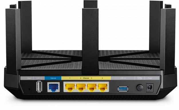 Общая скорость Wi-Fi соединения при использовании Archer C5400 составляет до 5400 Мбит/c: до 1000 Мбит/c в одном частотном диапазоне 2,4 ГГц и до 2167 Мбит/с в двух частотных диапазонах 5 ГГц. Благодаря многопользовательской технологии MU-MIMO роутер предоставляет безупречное Wi-Fi соединение для мобильных устройств, а для игр и воспроизведения потокового видео на нескольких гаджетах может увеличить быстродействие Wi-Fi втрое. Кроме этого здесь используется двухъядерный процессор с тактовой частотой 1,4 ГГц и тремя сопроцессорами, восемь антенн с мощными усилителями, которые обеспечивают максимально широкое покрытие Wi-Fi сети, четыре гигабитных порта Ethernet, а также разъемы USB 3.0 и USB 2.0.