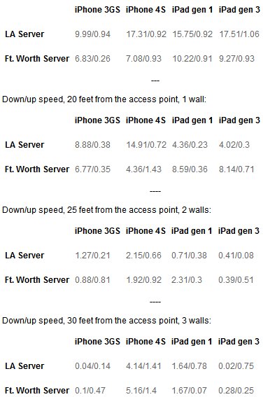 Третий iPad плохо ловит Wi-Fi![]() Антенна в iPad первого поколения расположена за «яблочком». Перегревается? Ну и ладно. Странно заряжается? Ничего страшного. Плохо ловит Wi-Fi? Да какая нам разница. Всё равно купим. Хотя стоп. В этот раз проблема действительно не высосана из пальца. По многочисленным сообщениям, третий планшетник Apple «достойно» носит звание наименее дальнобойного устройства, когда речь заходит о беспроводном соединении. Обозреватели портала Tablet PC Review проверили мощность приёма сигнала сетей Wi-Fi в новом iPad и были неприятно удивлены результатом. Разницу проще всего понять в сравнении. iPhone 4S показывает самую лучшую «дальнобойность» по всем тестам и при любых обстоятельствах. На дистанции в 9 метров от роутера, пятый айфон принимает данные со скоростью в 5,16 МБ/сек, первый айпэд — 1,67 МБ/сек, а iPad 3 — всего 0,28 МБ/сек. Вот это разница так разница.