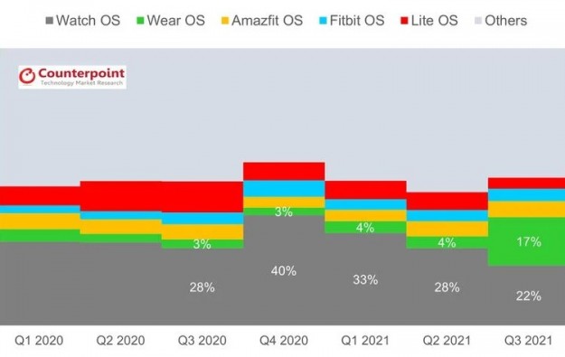 Мировые поставки умных часов в третьем квартале 2021 года выросли на 16 % по сравнению с тем же периодом прошлого года. Поставки Apple Watch сократились на 10 %, что может быть связано с тем, что новые Watch Series 7 поступили в продажу позже чем обычно из-за производственных трудностей. Вероятно, потребители неохотно покупали прошлогодние Watch SE и Watch Series 6, ожидая выхода новой модели.