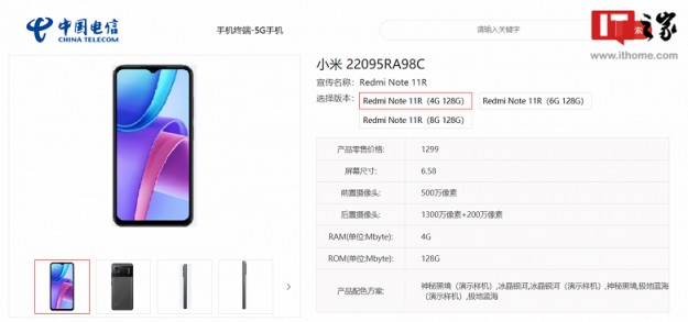 Модель Redmi Note 11R – виключно для місцевого ринку: її пропонуватиме своїм клієнтам оператор China Telecom. Зовні пристрій виділяється на тлі інших Redmi Note 11 лаконічно оформленою тиловою панеллю (тут лише два модулі в основній камері, і кожен отримав свій акуратний виріз) та великий напис Redmi. Але в технічному плані якихось особливих новацій немає. Redmi Note 11R отримав екран IPS з діагоналлю 6,58 дюйма, роздільною здатністю 2408 х 1080 пікселів і краплеподібним вирізом камери, акумулятор ємністю 5000 мАг з підтримкою зарядки потужністю 10 Вт . У конфігурації також є порт USB-C і стандартний роз'єм для навушників. Як ОС використовується Android 12, а апаратна платформа - MediaTek Dimensity 700 5G.