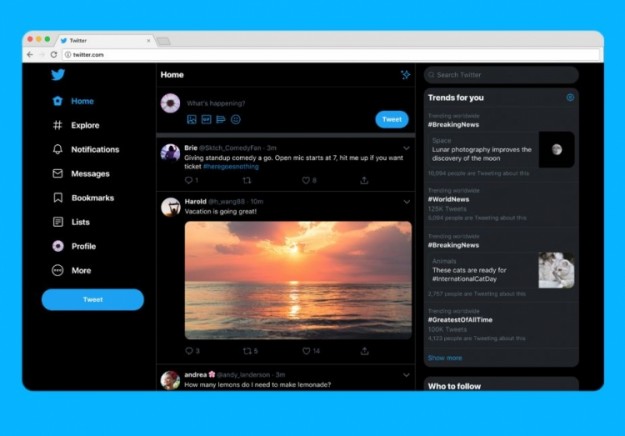 Также компания показала, как будет выглядеть новый вариант сети микроблогов. В целом, дизайн стал больше походить на мобильную версию. Панель навигации стала крупнее и на ней появились кнопки Bookmarks, Lists, Profile, секция Direct Messages расширилась. А вот «Моменты», наоборот, убрали в подменю.