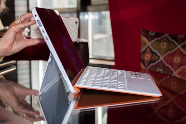 Обладатель 10.1-дюймового экрана с разрешением 800х1280 точек он претендует на звание самого легкого устройства типа 2-в-1. Вместе с обложкой-клавиатурой он весит всего 790 грамм.