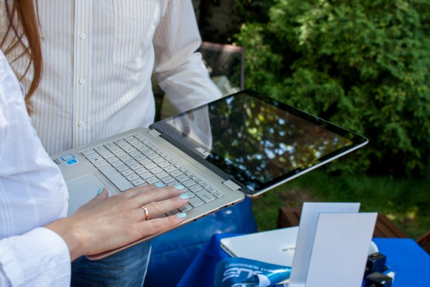 Честно признаться, Zenbook Flip UX360 также не и з дешевых в своем классе устройств - от $900. Однако благодаря уникальной конструкции корпуса, оснащенного шарнирным механизмом, гаджет получился одним из самых универсальных на рынке. Сенсорный 13.3-дюймовый Full HD или WQXGA+ дисплей ноутбука откидывается на 360 градусов, благодаря чему его можно использовать сразу в четырех режимах: ноутбук, планшет, презентация и консоль. Проще говоря, модель удобна в использовании практически в любых условиях.