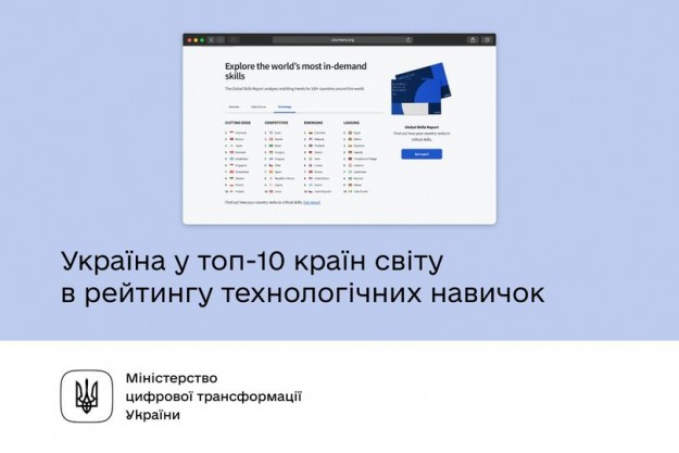 Україна увійшла у топ-10 країн світу в рейтингу технологічних навичокУ категорії країн-лідерів Україна посіла 21-ше місце серед 100 країн світу. А в рейтингу за технологічними компетенціями — 8-ме! Такий результат оприлюднено в щорічному дослідженні Global Skill Report 2022 від Сoursera: https://bit.ly/3NWy111 Це означає, що українці — одні з найкращих у світі в роботі з комп’ютерними мережами, базами даних, операційними системами, інженерією безпеки, програмною інженерією, комп'ютерним програмуванням, хмарними обчисленнями, веброзробкою, розробкою застосунків для мобільних пристроїв тощо.