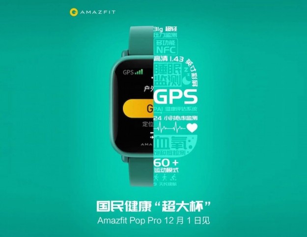 Умные часы Amazfit Pop Pro с модулем NFC будут представлены 1 декабряРынок носимых устройств в этом году существенно вырос. Лидером сегмента по-прежнему являются Apple Watch, однако китайские компании предлагают массу доступных альтернатив, которые находят своего покупателя благодаря хорошему набору возможностей за разумную цену. Среди них выделяется компания Huami, которая производит Mi Band для Xiaomi, и сама выпускает умные часы Amazfit. Теперь она готовится представить 1 декабря новые часы под названием Amazfit Pop Pro.