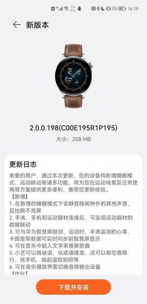 Обновление HarmonyOS 2.0 под номером 2.0.0.198 в настоящее время выпущено в Китае и постепенно станет доступно для пользователей по всему миру. Апдейт имеет размер 258 МБ и устанавливается через смартфон. Среди изменений и новшеств — спящий режим, который помогает свести к минимуму отвлекающие оповещения во время сна, возможность синхронизации данных в реальном времени с другими устройствами в экосистеме Huawei, ввод с клавиатуры для поиска музыки, возможность выбора способа воспроизведения музыки — через наушники Bluetooth или часы. Голосовой помощник Celia получил новые функции для различных типов задач, например, отгадывание загадок, раскладка пасьянсов, проверка ограничений на поездки, поиск телефона и вызов функции дистанционного управления для съемки на смартфоне. Кроме того, была проведена оптимизация режима «Не беспокоить» и повышена стабильность системы.