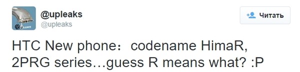 UpLeaks: HTC готовит к анонсу смартфон HimaR«Мастер утечек» UpLeaks на своей странице в сервисе микроблогов Twitter сообщил о подготовке тайваньской компанией HTC к анонсу нового смартфона под кодовым названием HimaR.
