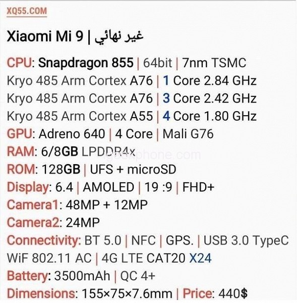 Утечка подтверждает характеристики флагманского смартфона Xiaomi Mi 9, который выйдет в марте 2019Источники опубликовали подробности о характеристиках флагманского смартфона Xiaomi Mi 9, который будет выпущен в марте этого года. Он станет преемником крайне удачной модели Xiaomi Mi 8.