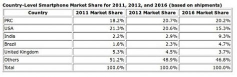 В 2012 году Китай станет крупнейшим рынком смартфоновКитай скоро превзойдет США по объему продаж смартфонов.