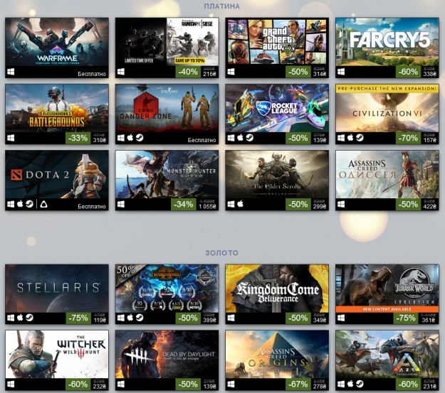 Компания Valve назвала игры, которые лучше всего продавались на площадке цифровой дистрибуции Steam в 2018 году. Традиционно, сотня бестселлеров Steam разделена на четыре категории — «Платина», «Золото», «Серебро» и «Бронза». Джерело: www.ferra.ru Обговорення новиниКоментариев пока никто не оставил. Станьте первым! Попередні новини