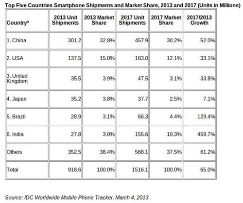 В этом году будет произведено больше смартфонов, чем телефоновПо крайне мере, так считают аналитики исследовательской компании IDC. Согласно их отчету, 50,1% реализованных в текущем году телефонов, окажутся смартфонами, а остальная часть отойдет «простым» телефонам.
