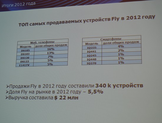 В этом году, согласно оценке представителей Fly, компания заработает в Украине не менее $75 млн., поставив при этом до 900 тыс. устройств различного уровня, что ровно в три раза больше, чем было ввезено в прошлом году.