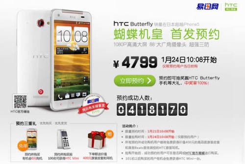Стало известно о том, что в Китае начались продажи модели HTC Butterfly от одноименного тайванского производителя, компании HTC.