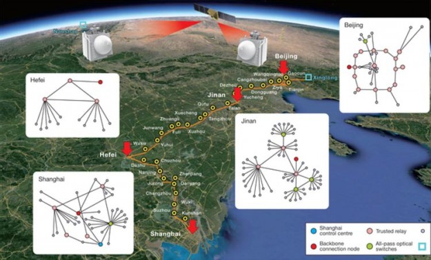 В Китае развернута первая в мире интегрированная сеть сверхзащищенной квантовой связиВ Китае под руководством учёных из Университета науки и технологий Китая развёрнута первая в мире интегрированная сеть квантовой связи. Общая протяжённость сети достигает 4600 км. И это не просто оптический кабель от точки до точки, а полностью рабочая сеть из более чем 700 оптических сегментов и двумя станциями космической связи с передачей данных по спутниковым каналам. Проделана грандиозная работа, которая начинает работать на благо Китая.