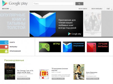В магазине Google Play теперь есть книги и фильмы на русском языкеБуквально на днях стало известно о том, что в магазине Google Play появилось обилие книг и фильмов на русском языке, которые все пользователи магазина могут брать «на прокат» либо же покупать. На сегодня магазин Google Play располагает миллионами электронных книг, с которых около трех миллионов (а по некоторым данным – это чуть больше трех миллионов), совершенно бесплатные.
