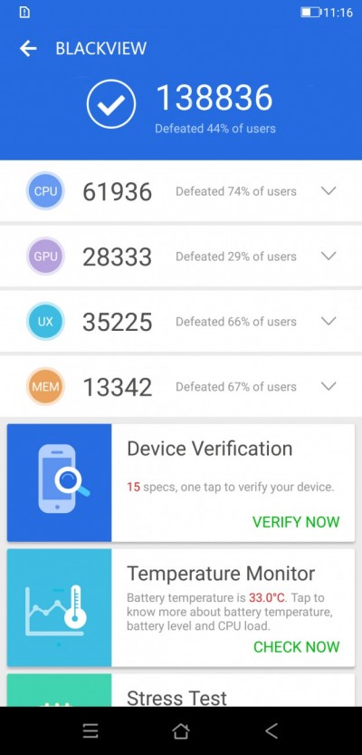 Ниже мы публикуем результаты тестов на производительность в бенчмарке Antutu BV9600 Pro от Blackview.