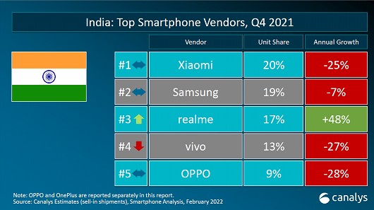 В рейтинге популярности смартфонов компания realme занимает 3 место в Украине в четвертом квартале 2021 годаСогласно последним данным Canalys, realme попала на 3-е место в рейтинге популярности смартфонов в Украине. Компания показала годовой темп роста в 155%, опередив традиционные популярные бренды на рынке. Тем временем realme, самый молодой среди 6 ведущих брендов смартфонов в мире, сохраняет значительный темп роста и в четвертом квартале 2021 года вошел в 5 самых популярных марок на 30 рынках и в 6 регионах мира, соответствуя его главной ценности «Dare to Leap».