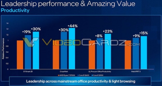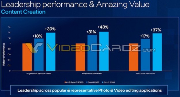 Помимо информации о характеристиках и ценах новых процессоров, ресурс VideoCardz также получил слайды из предстоящей презентации Intel, на которых сравнивается производительность Core i5-12600 и Core i9-12900 с AMD Ryzen 7 5700G. Джерело: 3DNews.ru Обговорення новиниКоментариев пока никто не оставил. Станьте первым! Попередні новини
