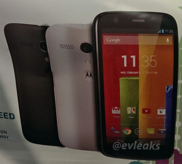 В Сеть утекли спецификации смартфона Motorola Moto GПосле появления линка на официальном сайте производителя на не представленный еще официально смартфон Motorola Moto G, который является бюджетной версией Moto X, в Сети известным twitter-аккаунтом @evleaks было опубликовано его фото и перечень некоторых технических характеристик. Согласно источнику информации, Moto G получит от производителя 4.7-дюймовый LCD экран с разрешением 1280х720 пикселей, процессор семейства Snapdragon S4 Pro с тактовой частотой 1.5 ГГц от Qualcomm, 8 ГБ или 16 ГБ внутренней памяти, аккумулятор емкостью 1950 мАч и 8Мп камеру.