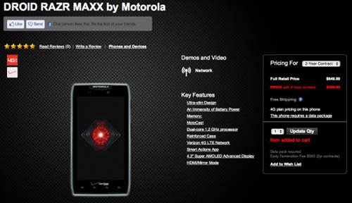 Американский оператор Verizon Wireless начал продажи нового смартфона Motorola Droid Razr Maxx. Благодаря мощному аккумулятору ёмкостью 3 300 мАч этот аппарат может проработать до 21 часа в режиме разговора и до 15,8 дня в режиме ожидания.