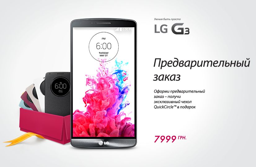 LG G3 поступит в продажу во все торговые сети Украины в начале июля по цене 7999 грн. Предварительный заказ на новинку все желающие могут оформить уже сейчас на сайте: www.lg.com/ua/g3. Ключевые характеристики смартфона LG G3: - Процессор: Qualcomm Snapdragon 801 (до 2.5 ГГц, четырехъядерный) - Дисплей: 5,5-дюймовый Quad HD IPS (2560 x 1440, 538 пикселей на дюйм) - Память: встроенная память 16 Гб, оперативная память 2 Гб, разъем для microSD (максимальная – 128 Гб) - Камера: основная – 13 Мп с системой оптической стабилизации изображения OIS+ и лазерным автофокусом / фронтальная – 2,1 Мп - Батарея: 3 000 мАч (съемная) - Операционная система: Android 4.4.2 KitKat - Размеры: 146,3 x 74,6 x 8,9 мм - Вес: 149 г - Поддержка сетей: 4G / LTE / HSPA+ 21 Mbps (3G) - Поддержка: Wi-Fi 802.11 a/b/g/n/ac, Bluetooth Smart Ready (Apt-X), NFC, SlimPort, A-GPS/Glonass, USB 2.0 - Цвета: черный металлик, белый шелк, сияющее золото - Другое: «Умная» клавиатура, Smart Notice, Knock Code, «Гостевой режим» и т.д. Джерело: SmartPhone.ua Обговорення новинимарат: Подарите а... Попередні новини