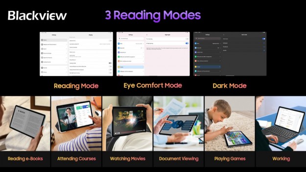 Крім того, Tab 16 сертифікований TUV Rheinland low blue light і підтримує три моделі читання, перегляд електронних книг або новин у режимі читання, схожому на газети (Kindle), забезпечуючи здоров’я очей у режимі комфорту очей, уникаючи втоми очей, спричиненої тривалим використанням та слабким освітленням вночі. До того ж присутній темний режим, який є третім важливим елементом захисту очей.