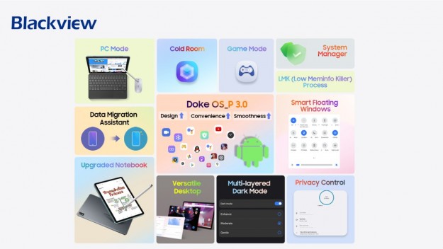 Планшет Tab 16, який достатньо пропрацювали в плані дизайну, плавності роботи та безпеці, оснащений DokeOS_P 3.0 на базі Android 12 з фірмовими режимами для різних сценаріїв роботи. Cold Room тимчасово заморожує рідко використовувані програми, щоб пришвидшити завантаження актуальних, заощаджуючи більше енергії та більше трафіку. З RAM Fast планшет вміщує більше фонових процесів і забезпечує більш плавне використання. За допомогою стандартного стилуса можна записувати заняття та зустрічі на Tab 16, а це робить буденні речі більш творчими та веселими.