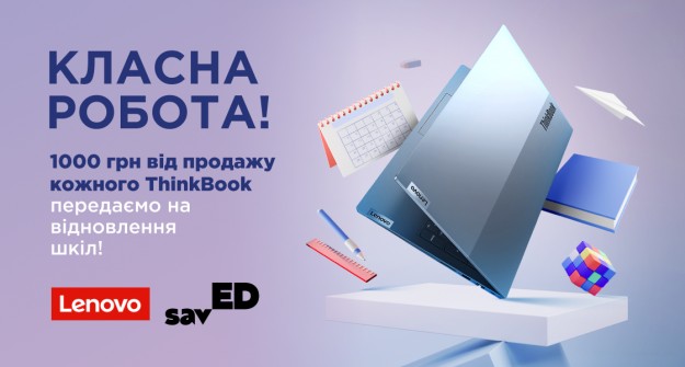 Деталі ініціативи: Спільна ініціатива спрямована на збір коштів для відбудови пошкоджених українських закладів освіти та відновлення доступу дітей до навчання в рамках кампанії #до_школи_знов. У рамках акції "Класна робота!" компанія Lenovo з кожного проданого ноутбука Lenovo ThinkBook перераховує 1 000 гривень до благодійного фонду savED. За час першої хвилі акції вдалось зібрати понад один мільйон гривень. Наступні кроки: Компанія Lenovo продовжує акцію до 24 грудня 2023 року. Усі зібрані кошти будуть спрямовані на ремонт та облаштування повноцінної тимчасової школи у селі Червона Долина Баштанського району на Миколаївщині. Для того, щоб діти змогли повернутись до офлайн навчання, фонд обрав приміщення в місцевому будинку культури, будівля якого вціліла, та вже працює з партнерами над створенням цифрового освітнього центру в ньому. Окрім цього для повноцінного навчання необхідно облаштувати три класні кімнати та укриття у решті приміщення. Анна Пуцова, керівниця регіонального розвитку та співзасновниця фонду savED, коментує співпрацю так: «Команда нашого фонду впевнена: відновлення українських шкіл — на часі. Наші діти мають здобувати якісну освіту в офлайн-форматі просто зараз. Тішимося, що Lenovo поділяє наші погляди та допомагає повернути маленьким українцям й українкам базове право — право на освіту».