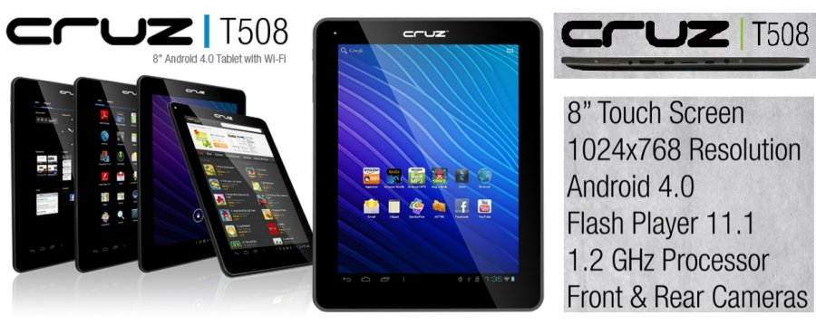 Velocity Micro анонсировала планшет Cruz T508 с диагональю дисплея восемь дюймовМалоизвестная у нас компания Velocity Micro представила на рынок планшет под управлением Android ICS. Сообщается, что дисплей, реализованный в новинке, получил диагональ восемь дюймов, и построен на базе емкостной матрицы. Разрешение его 1024х768 точек при соотношении сторон 4:3.