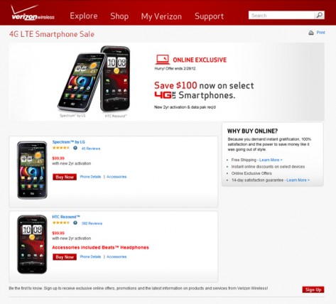 Компания Verizon решила снизить стоимость "причудливых" смартфонов HTC Rezound и LG Spectrum на 99 долларов.
