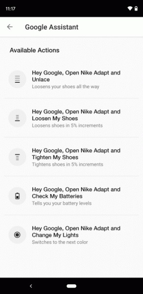 Компания Google объявила о запуске очень полезной функции для своего голосового помощника Google Assistant (Ассистент Google). Обновлённый помощник позволяет управлять голосом некоторыми сторонними приложениями со смартфона, планшета и других поддерживаемых устройств, а также создавать собственные команды. Примером такого расширенного взаимодействия Ассистента Google со сторонними приложениями поделился тематический ресурс 9to5Google. Автор продемонстрировал, как голосовой помощник может теперь зашнуровывать кроссовки. Правда, сработает это только с кроссовками серии Nike Adapt с автоматической шнуровкой.
