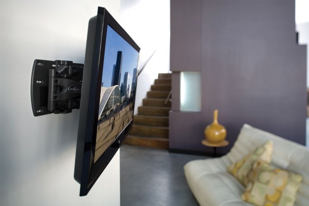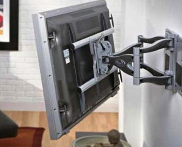 - наклонно-поворотные. Это самые современные модели устройств. Они позволяют регулировать положение экрана в двух плоскостях: горизонтально и вертикально. Благодаря расширенным функциям можно подобрать максимально удобный угол наклона телевизора. Но в данной модели есть существенный минус – солидная глубина. Экран размещается не вплотную к стене, а на расстоянии, что не всегда удобно и идёт вразрез с законами эргономики.