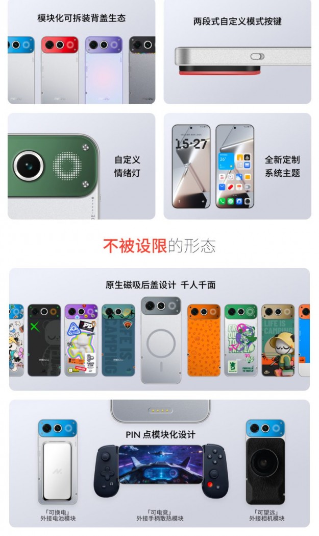 Компанія також продемонструвала концепт магнітної задньої кришки, що дозволило б користувачам, змінюючи кришки, змінювати зовнішній вигляд смартфона телефону. Смартфон також отримав настроюване піксельне підсвічування з відображенням різних візерунків, які можна було б змінювати відповідно до свого настрою. Meizu 22 Air також оснащений двоступеневою настроюваною кнопкою вибору режиму. Meizu повідомила, що також розробила нові системні теми для користувачів, які цінують візуальну персоналізацію. Але все це тепер не втілиться в серійному продукті.